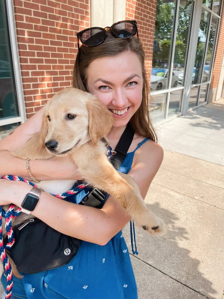- Then we ended July by picking up our sweet little puppy, Waffles! Our very own golden retriever pup – something I’ve dreamed of my entire life! July was a big month!